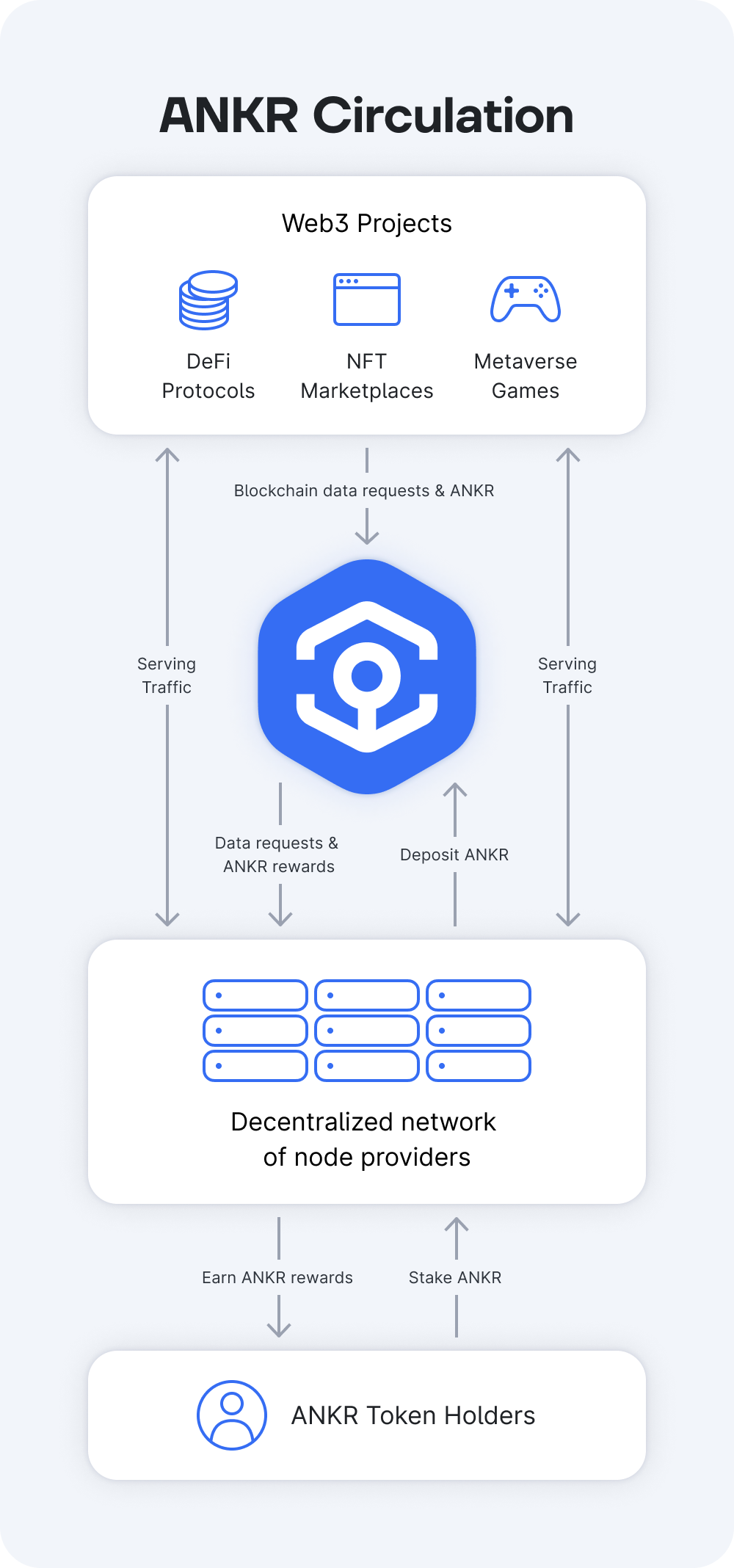 Whether you’re an Ankr Network user, node provider, or staker, ANKR facilitates all network operations. This helps us deliver a Web3-native experience and community-driven products.
